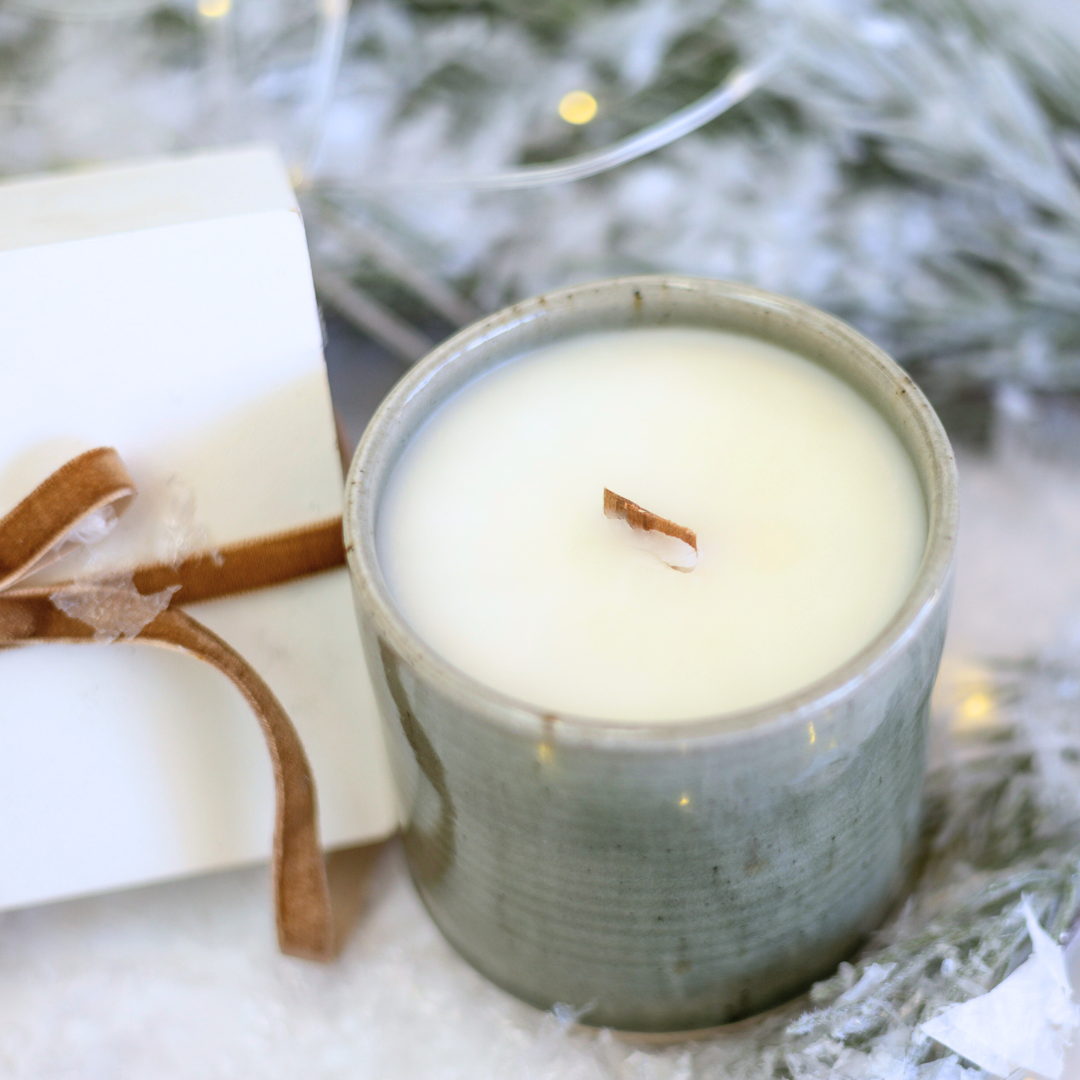 Please know that each vessel is made by hand so may have slight variations in size and the candle pour is 11-12oz each for a burn time of around ~80-90 hours when you trim your wooden wick.